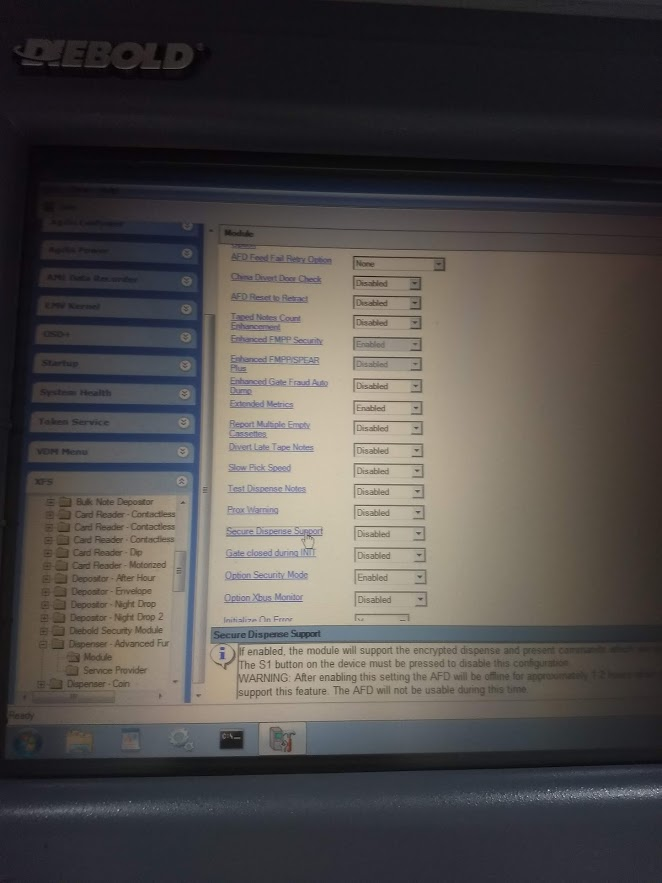 Teniendo en cuenta que tanto para NCR como para Diebold estas opciones son únicamente para evitar endoscopio (hablando de los niveles más seguros de sus configuraciones) y ataques que blackbox por USB, y en ambos casos se editan unos registros de REGEDIT de windows para poder mantener esas configuraciones en cada Reboot, no vamos a entrar en detalles de todos los REGEDIt necesarios para editar y cambiar o degradar configuraciones por que se escaparía de la idea principal del post .