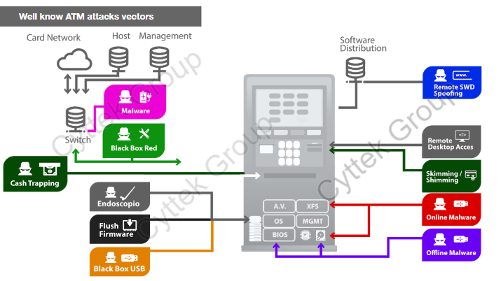 Este es un mapa muy práctico desarrollado por nosotros donde excluimos los ataques como gas, explosiones y arrancado del piso de ATMs, y nos centraremos en ataques que pueden sufrir los ATMs de forma más técnica, o que el atacante requiere cierta especialización de algún tipo técnica o colusión con algún especialista tecnico.