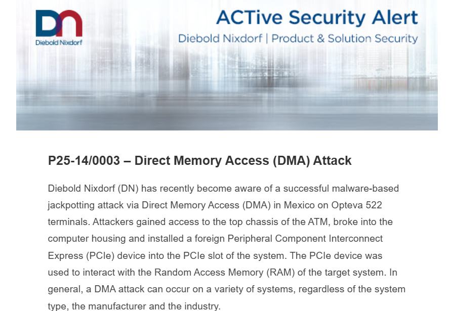 Si recordamos los dispositivos DMA recientemente utilizados en ataques de ATMs