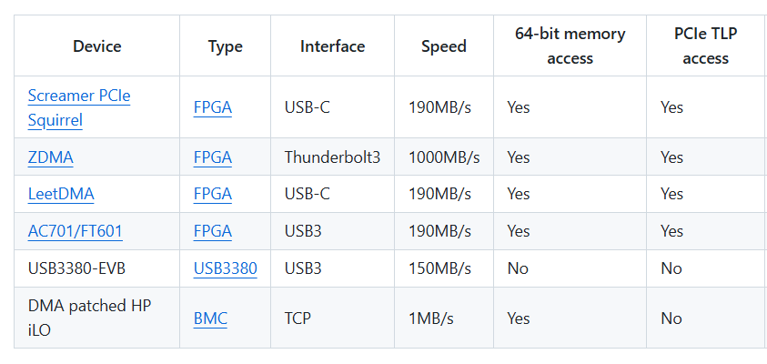 También son dispositivos de menos de 300 USD en algunos de los casos, luego profesionalizándolos con baterías y cables extensiones de PCI pueden ronda los 500USD, igual en todos los casos de ataques recientes también se a utilizado código de inyección de DMA proveniente de proyectos en GITHUB.